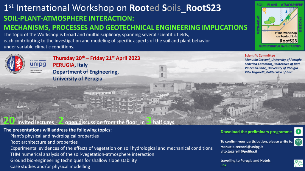 The first international RootS workshop was held at the University of Perugia on April 20–21, 2023, and featured 20 invited speakers from around the world.